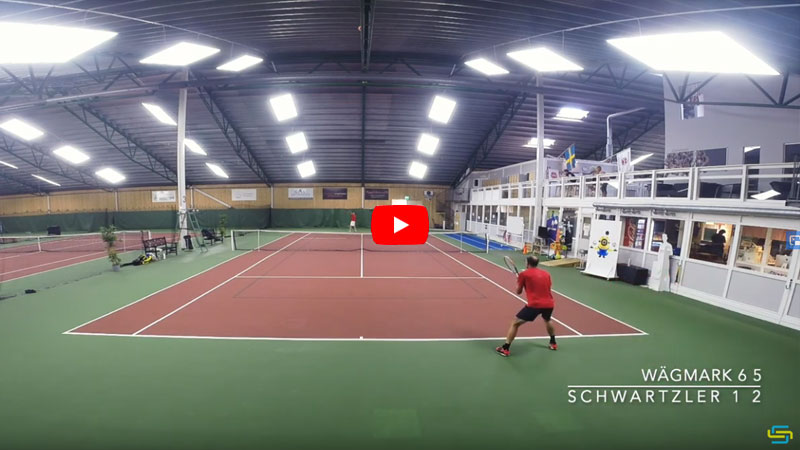 Parallellt med Ström - Mattsson spelades finalen för femte platsen mellan [5] Anders Wägmark och [6] Cédric Schwartzler. Matchen blev en högt dramatisk och publikvänlig tillställning mellan två konditionsstarka löpare. Första set blev en tight uppgörelse där spelarna följdes åt på resultattavlan. Vid 4-5 servade Schwartzler för att stanna kvar i setet och höll "sin vana otrogen" sin serve. Därefter bröt han Wägmark men lyckades inte ta hem setet vid 6-5 egen serve. Det skulle avgöras på tiebreak. Schwartzler inledde bäst och ledde med 3-0 när han plötsligt trampade snett och stukade foten helt oprovocerat när han skulle fånga en boll som inte längre var i spel. Det blev ett "medical timeout" men Schwartzler valde att testa att spela vidare. I och med att Wägmark gjorde två misstag därefter blev det 5-0 för fransmannen vilket givetvis är ett svårt läge att bryta en match inför en förväntansfull publik. Man kan diskutera hur smart det var att spela vidare med tanke på hur foten ser ut dagen efter, men man bryter inte en final i den anrika SK Invitational. Med begränsad rörlighet dock med mer avslappnad inställning på grund av uppgivenhet som infann sig tog Schwartzler setet med 7-3.